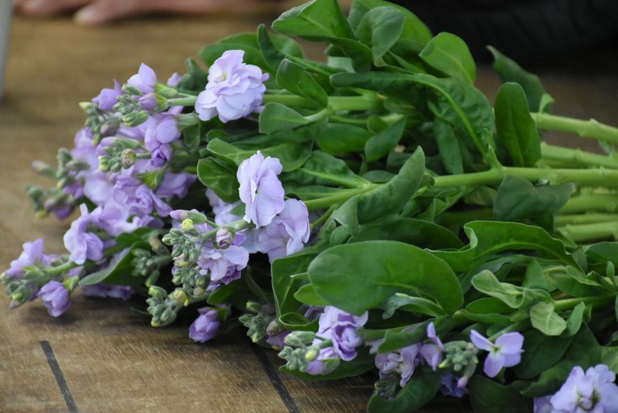 ストックはすらりと伸びた茎に、ふわふわとした小さな花がたくさん。