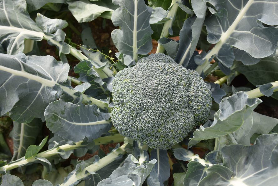 知多半島で収穫された新鮮なブロッコリーは花蕾がぎっしり詰まっています。冬の寒さで紫がかったものは特に甘さが強いです。