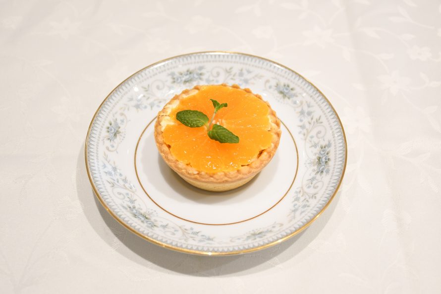 6. ④に輪切りにしたミカンをのせ、ミントをつけて完成!